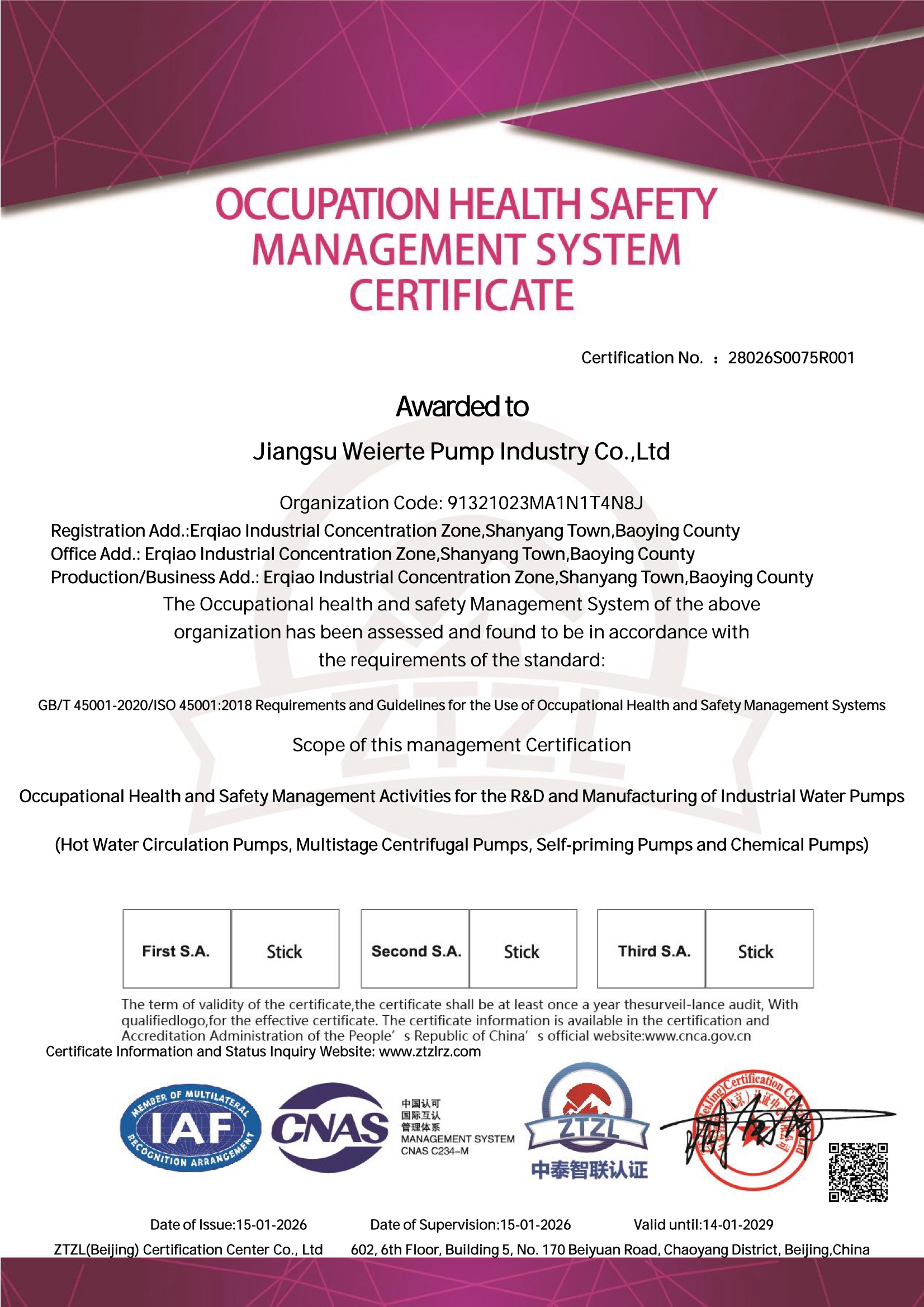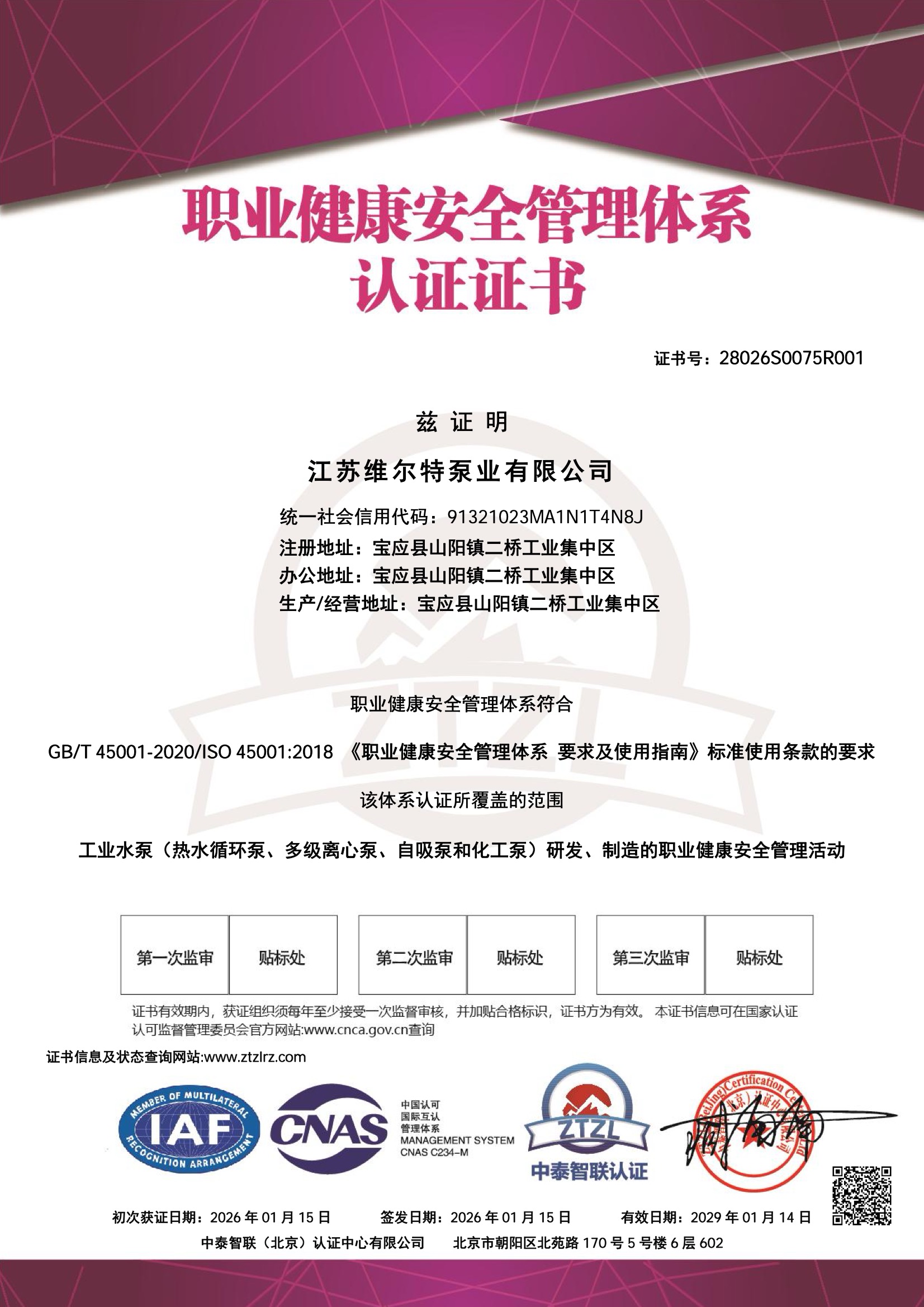 职业健康安全管理体系认证